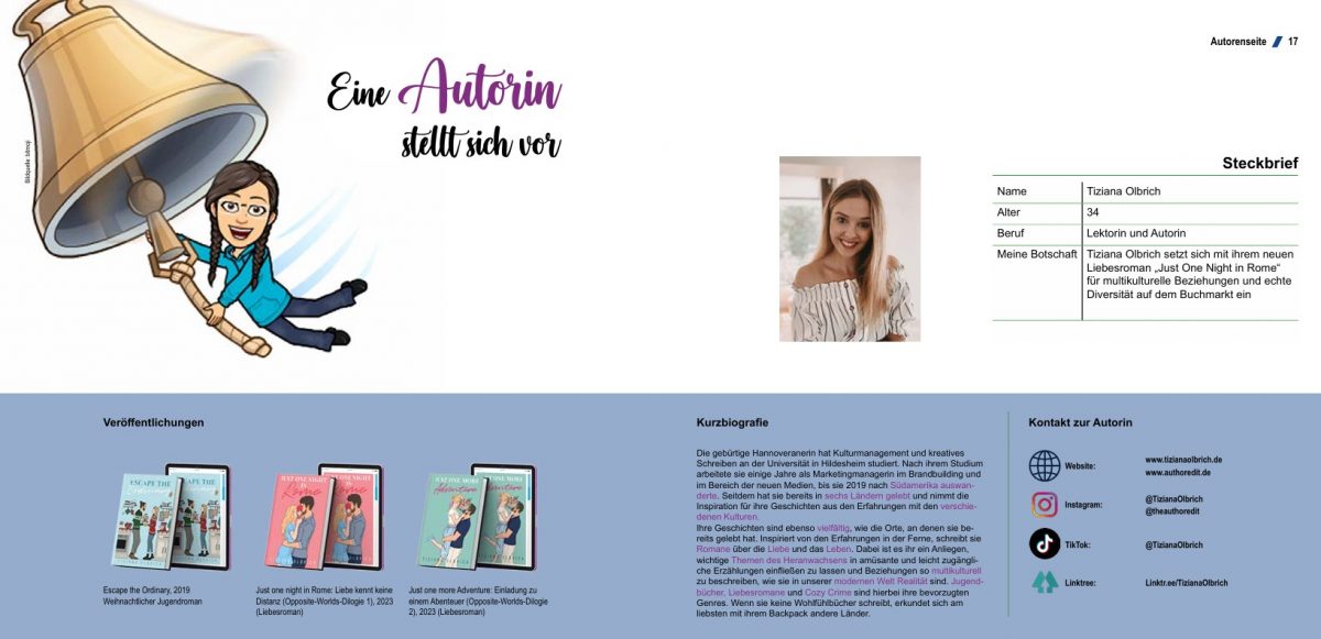 Tiziana Olbrich ist Autorin und Lektorin, hat in Hildesheim studiert und ist 2019 nach Chile ausgewandert. Anstatt wie zuvor als Marketingmanagerin tätig zu sein, arbeitet sie jetzt freiberuflich als Buchredakteurin und Autorin von Liebes- und Kriminalromanen. Mittlerweile hat die 1989 in Hannover geborene Autorin bereits in sieben Ländern gelebt, was deutlich in ihren Büchern spürbar und lesbar ist. „Aber egal wo ich hinkomme, ich schwärme überall, immer von meiner grünen Heimat. Für mich ist eins ganz klar: Wenn ich in Deutschland lebe, dann nur in Hannover!“